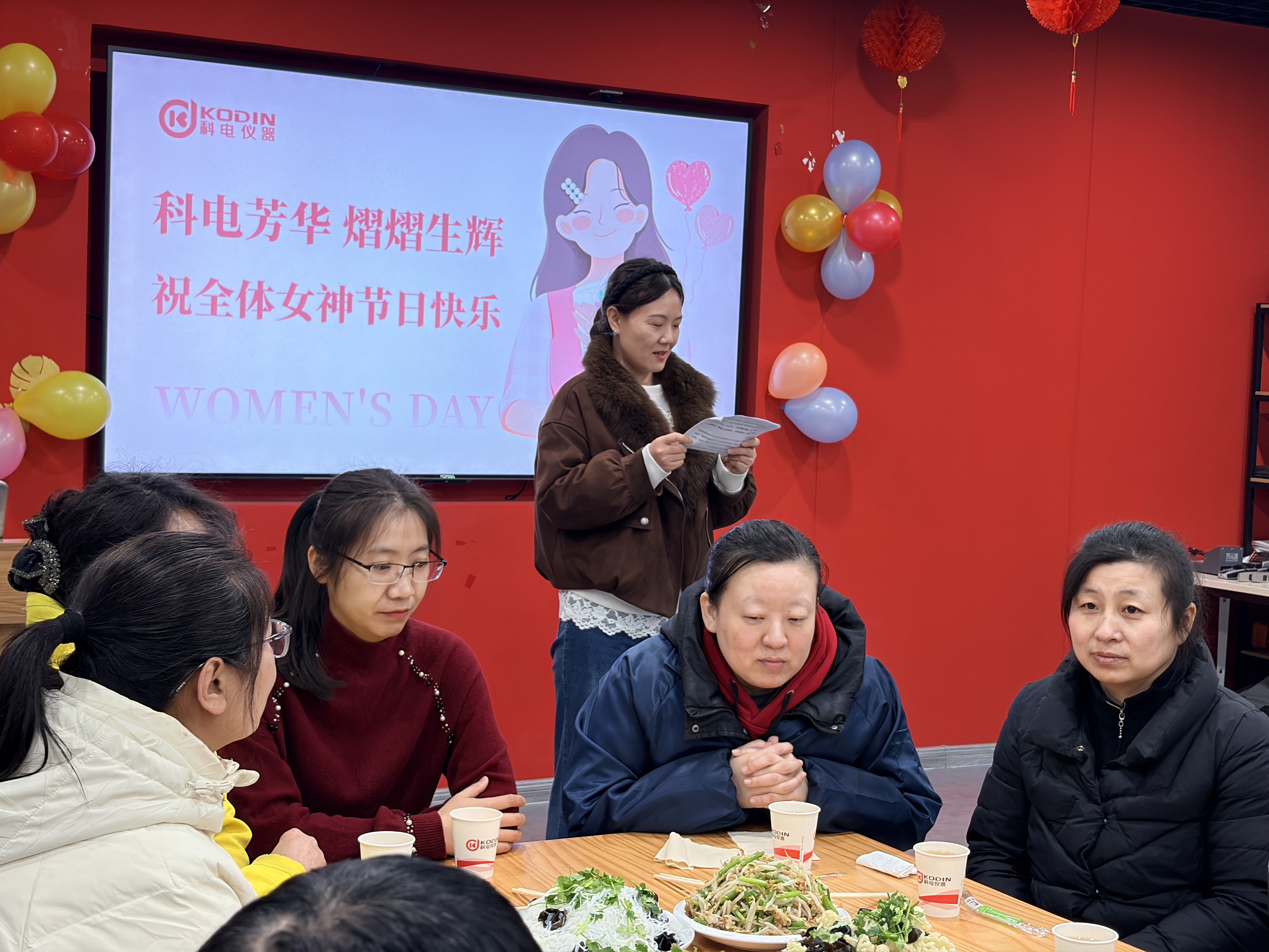 午餐開啟前,科電儀器董事長竇銳鋒先生、女性員工代表/市場部總監(jiān)鄭海燕女士分別致辭,