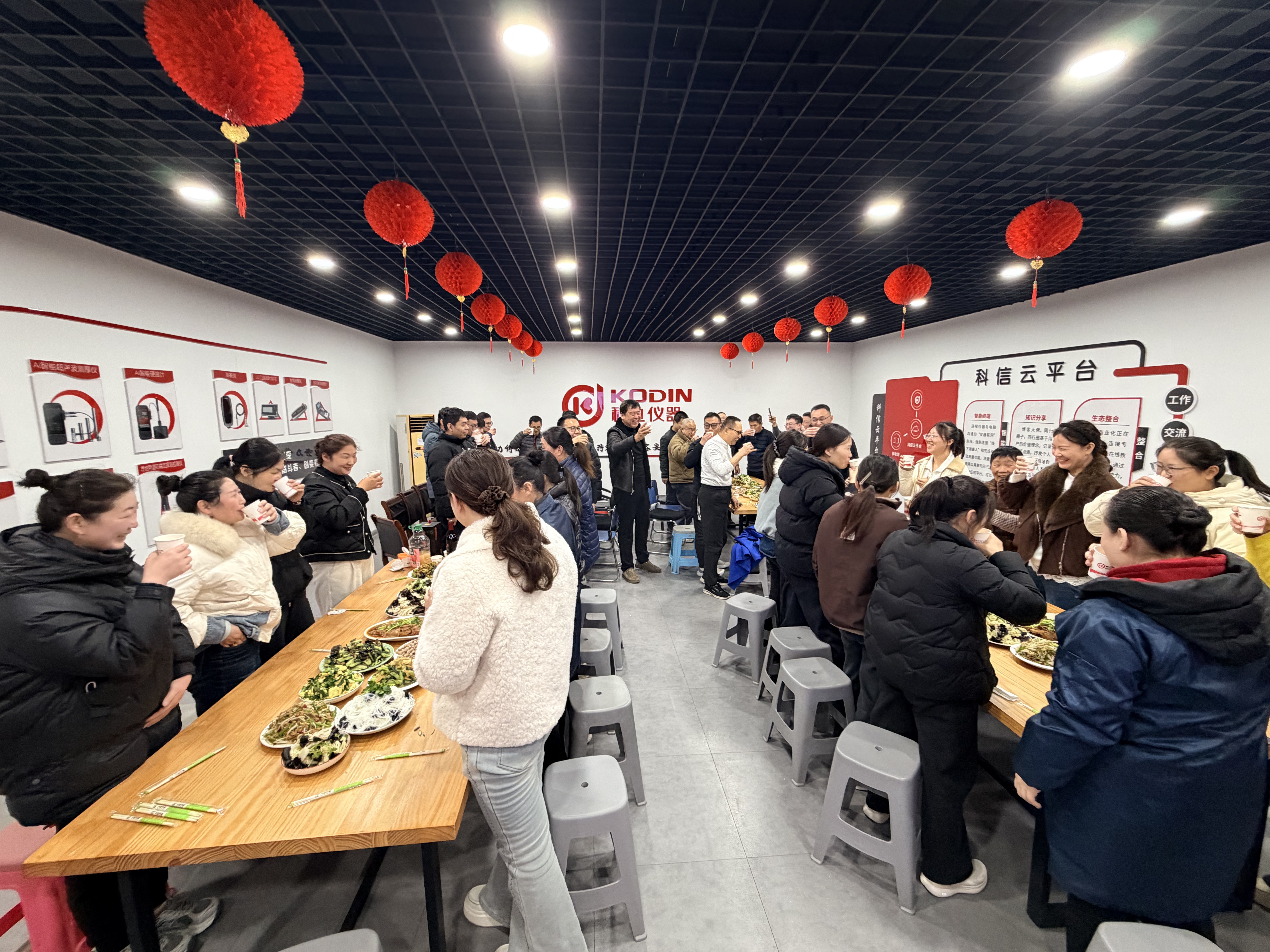 中午12:00,暖心節(jié)日聚餐在公司展廳溫情開啟,